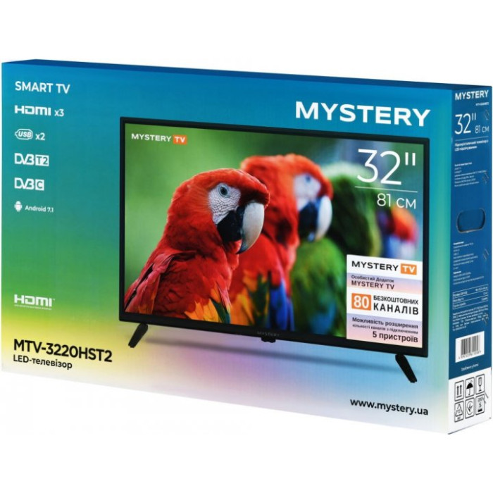 32-дюймовый Smart - телевизор с ОС Android, LED-подсветкой и разрешением HD Ready (1366х768). Smart TV от Mystery использует ОС Android и дает невероятные возможности в мире онлайн контента — YouTube, полноценный браузер, а также множество других сервисов для развлечений и отдыха.