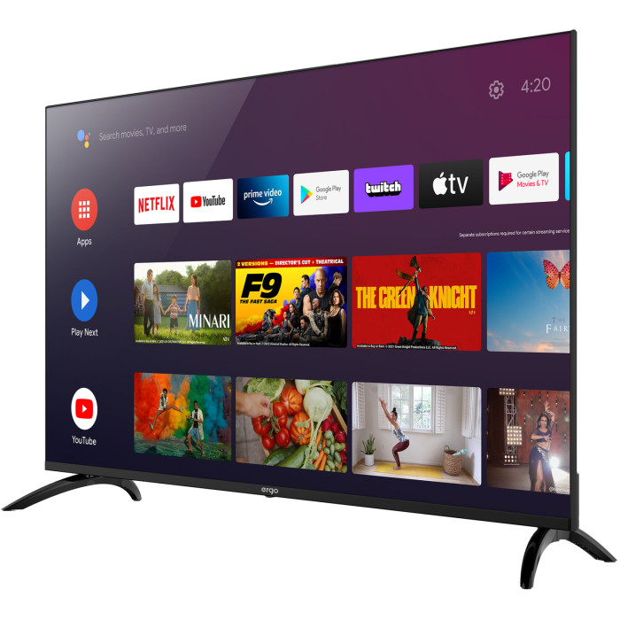 Официальная и популярная операционная система в мире от Google уже на вашем телевизоре ERGO. Безграничные возможности просмотра мировых стриминговых сервисов, новейшие премьеры, музыка, игры и путешествия в интернете на кнопке вашего пульта.