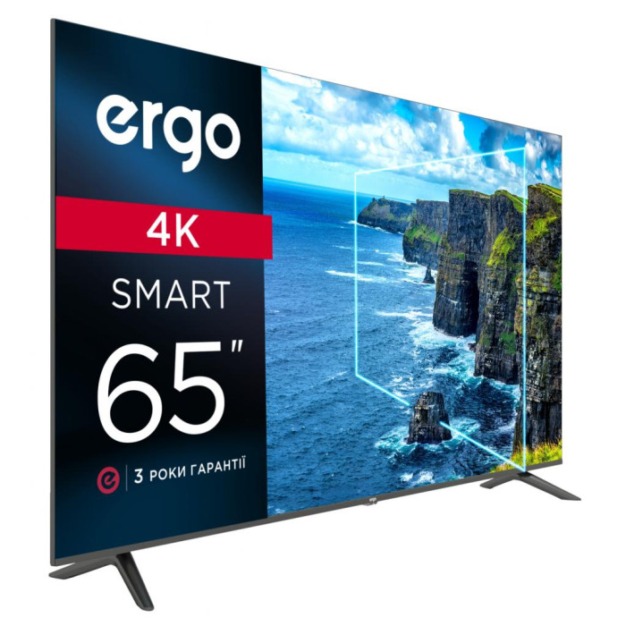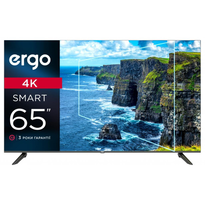 Телевизор Ergo 65DUS8000 – настоящая находка для любителей медиа-контента в лучшем качестве. Экран с диагональю 65 дюйма, обеспечивает сочные цвета, широкие углы обзора, глубокий контраст, яркую картинку и скорость отображения динамических сцен.