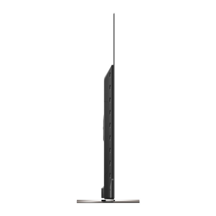 Ультратонкая металлическая рамка и темные хромированные ножки подставки придают этому телевизору чувство стиля, а пульт дистанционного управления содержит функциональные клавиши для быстрого перехода к любимым сервисам потоковой передачи.