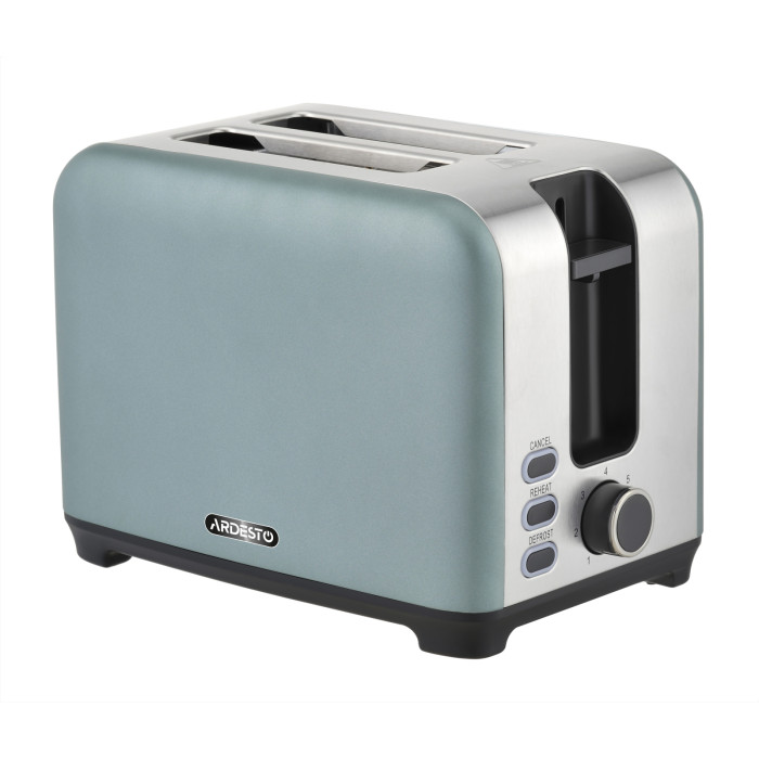 Тостер Ardesto T-F400G изготовлен из нержавеющей стали с мятными вставками. Благодаря инновациям он станет надежным помощником каждой хозяйки, желающей баловать родных вкусностей. В тостере можно обжарить сразу два хлебца с обеих сторон. Степень прокаливания – 7 уровней – можно выбрать с помощью ручки. Если готовые тосты охладились, можно воспользоваться функцией обогрева. При использовании замороженного хлеба пригодится функция размораживания.