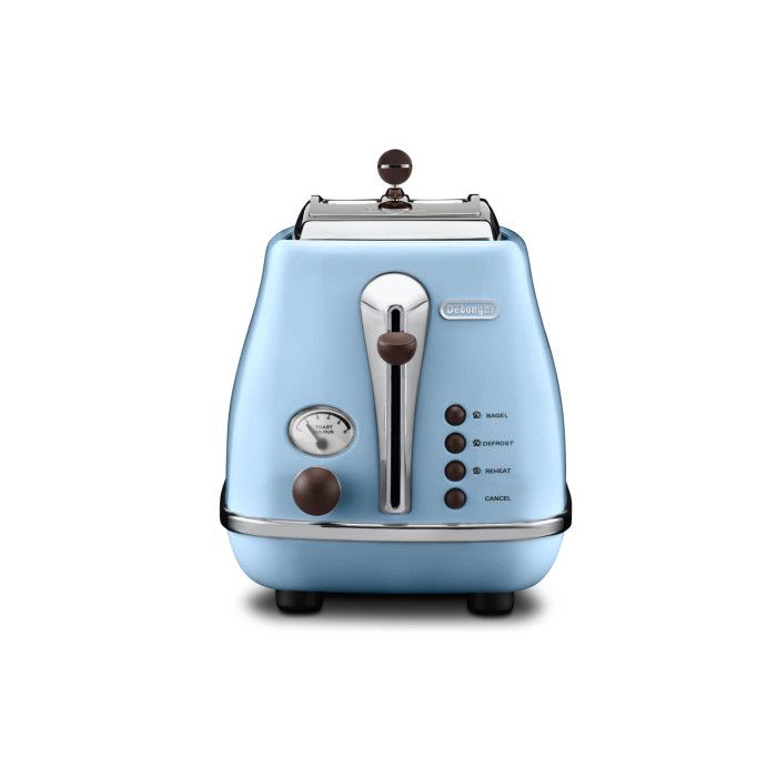 Управление Для управления прибором нужно освоить всего несколько кнопок. Нажмите на соответствующую кнопку и устройство выполнит команду: Bagel – подогрев, Defrost – размораживание, Reheat – односторонний подогрев, Cancel – отмена. Тостер DeLonghi CTOV 2103 прост в обращении. Специальный поворотный регулятор позволяет установить предпочтительный уровень нагрева. Вы можете выбрать степень поджаристости тоста, всего имеется 6 уровней нагрева.