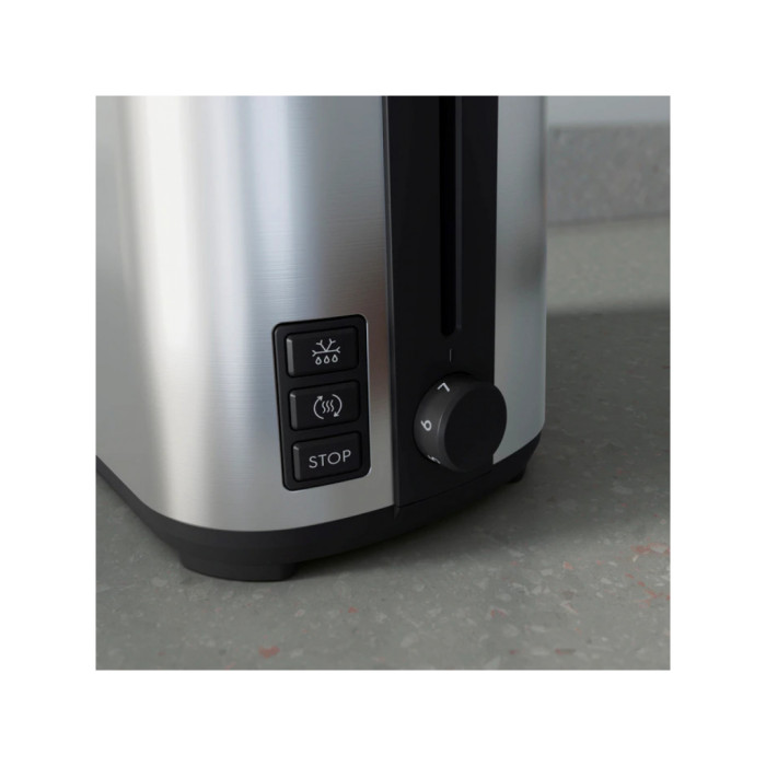 Функции остановки, подогрева, размораживанияУдобно прекратить поджаривание в любой момент, разогреть хлеб без повторного поджаривания и поджарить замороженные булочки — и все это с помощью одного тостера.