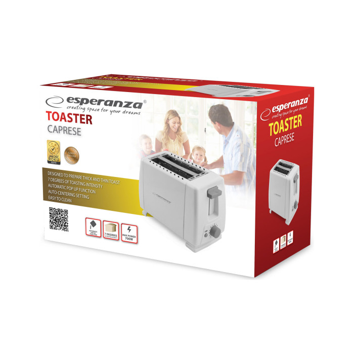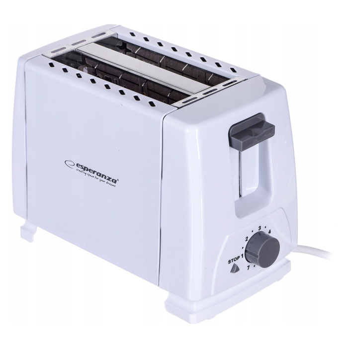 Тостер Esperanza Caprese EKT001 работает быстро и качественно, позволяет успеть сделать к завтраку сытные бутерброды. Изделие имеет два идентичных отделения для хлеба. Устанавливается на стол с помощью противоскользящих ножек, поэтому нет риска сбросить корпус на пол. Форма прибора обычная квадратная.