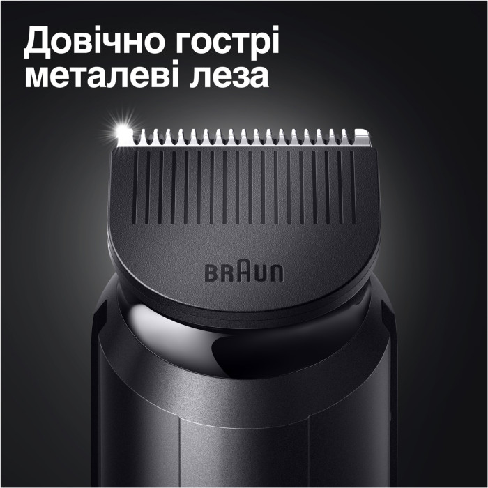 Триммер для бороды Braun 3 имеет большую режущую поверхность, захватывая и подравнивая больше волос при каждом движении.