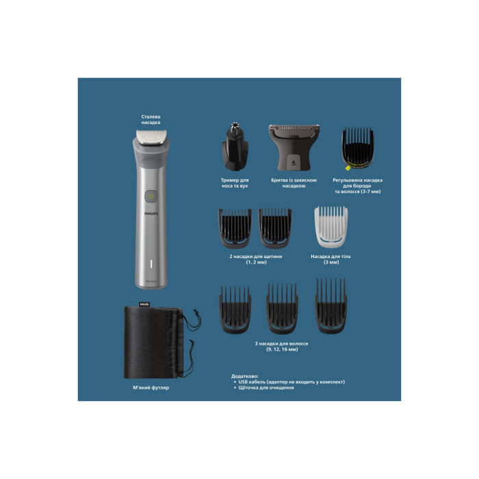 Этот универсальный триммер с различными насадками предлагает 11 настроек длины от 0,5 до 16 мм для равномерного подстригания.