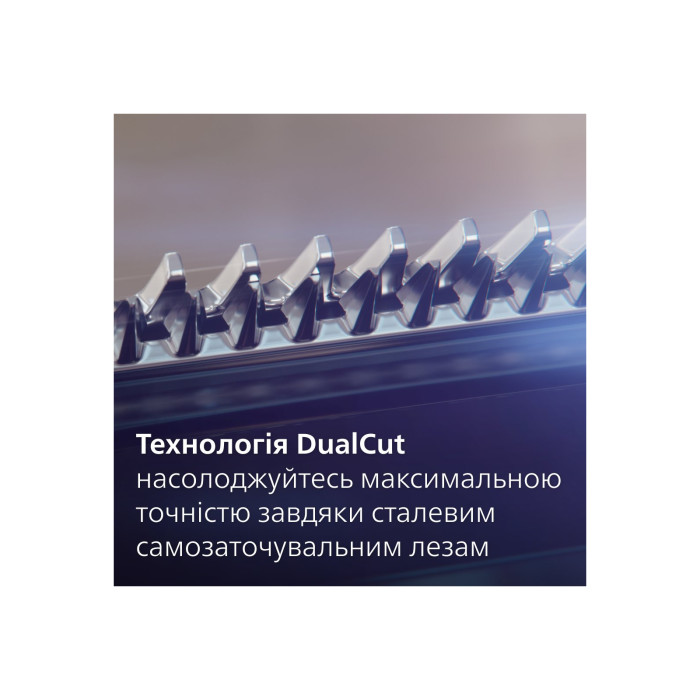 Наслаждайтесь максимальной точностью благодаря самозатачивающимся стальным лезвиям с технологией DualCut.