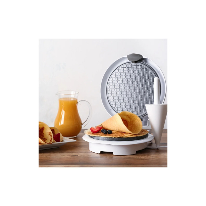 Вафельница MG-398 имеет все необходимые функции для того, чтобы быстро и без забот испечь к завтраку вкусные и ароматные вафли. Нагревательный элемент мощностью в 750-770 Вт обеспечит быстрый и равномерный нагрев двух рабочих поверхностей с антипригарным покрытием. Вафельницы Magio очень удобны в использовании: вафли не подгорают и легко вытягиваются. Благодаря компактным размерам и фиксатору вафельницы удобно хранить. На крышке есть световые индикаторы питания и готовность к работе, что облегчает контроль процесса приготовления. В комплект входит конус для приготовления рожков.