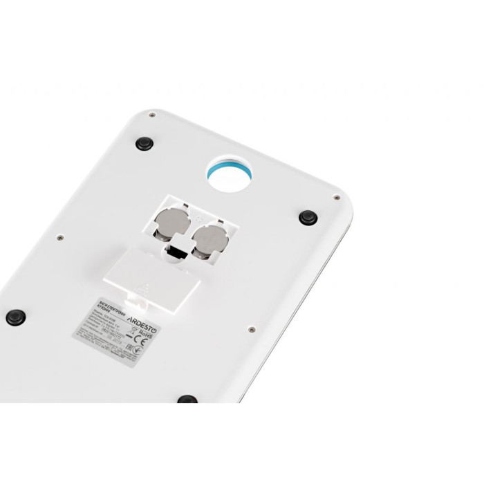 Весы оснащены высокоточным электронным механизмом. Максимальный вес для измерения – 5000 грамм, с дискретностью в 1 г. Для отображения результатов есть контрастный светодиодный дисплей, управление – сенсорное, а питание обеспечивают два элемента формата CR2032.