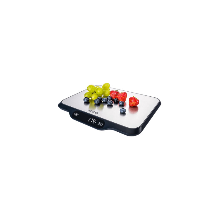 Весы кухонные ECG KV 215 S с максимальной нагрузкой в 15 кг и шагом измерения 1 грамм, оснащены плоской платформой из нержавеющей стали.