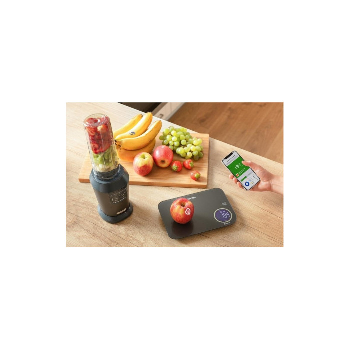 Кухонные весы Sencor. Оригинальное приложение Sencor FOOD, созданное в сотрудничестве с авторами Dine4Fit, с обширной базой данных продуктов питания. Предоставляет подробную информацию о потребляемой пище (углеводы, белки, жиры, холестерин, клетчатка и др.). ЖК-дисплей с белой подсветкой. 3 режима: режим взвешивания / режим измерения объема молока / режим измерения объема воды
