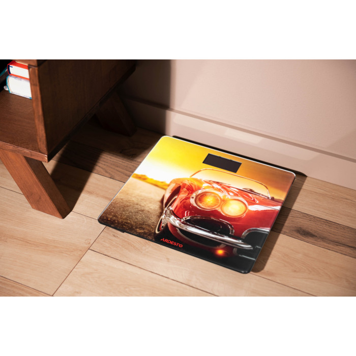 Весы напольные с дизайнерским рисунком. Предназначены для измерения массы тела и оснащены встроенным термометром и сравнительной функцией веса. Модель SCB-965CAR выполнена в эксклюзивном дизайне.