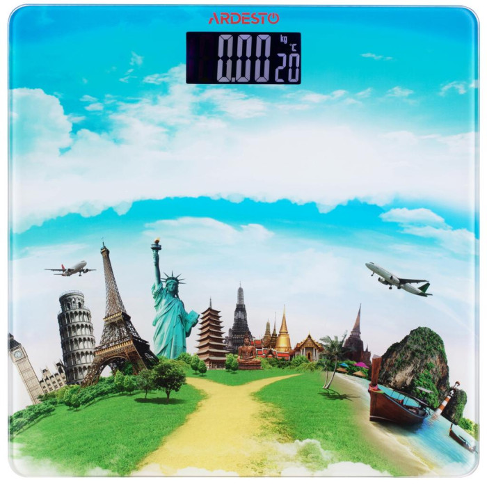 Напольные весы Ardesto SCB-965TRAVEL выполнены в уникальном дизайнерском варианте, где каждая модель имеет свой рисунок, воплощенный в виде принта под стеклянной основой. Платформа из стекла хорошо выдерживает нагрузки (максимум до 150 кг). Очень тонкая площадка для взвешивания позволяет весам иметь скромные габариты, поэтому уместить их в небольшую нишу, когда они не нужны, не так сложно. Ножки на нижней части амортизируют нагрузку, которую получает конструкция.