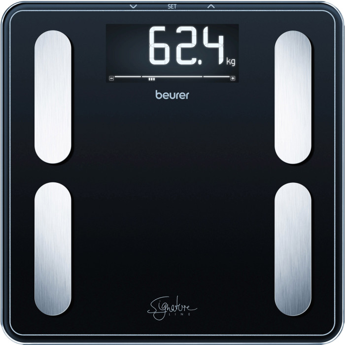 Напольные весы Beurer BF 400 Line сделаны в виде квадратной плоской платформы из стекла, толщина которого составляет 8 мм. Такой вариант дизайна выглядит великолепно: стекло стойко к износу, имеет стильную фактуру, легко очищается. Увеличенная толщина стеклянного слоя стала залогом прочности платформы и сохранности важных электронных механизмов весов.