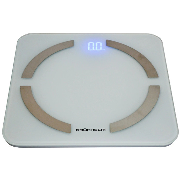 Фитнес-весы Grunhelm BES-32BFS – стильные удобные напольные весы сделанные из безопасного закаленного стекла . Имеют автоматическое включение и отключение и сенсорное управление. Максимально допустимый вес составляет 180кг, при этом погрешность составляет не более 100гр. Весы поддерживают разные единицы измерения: граммы, килограммы, фунты, унции, а вся информация отображается на большом экране. Из особенностей данной модели стоит отметить: функцию ''полной диагностики тела'' (индекс массы тела, уровень жира, воды, мышечной и костной ткани), наличие встроенной памяти на 8 пользователей, возможность сопряжения с мобильным приложением по блютуз.