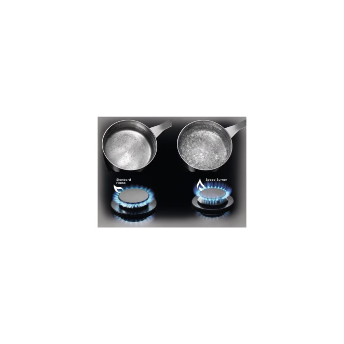 Горелка Speed Burner варочной поверхности Electrolux разработана для быстрого разогрева дна кастрюль и сковород. Помимо более быстрого и мощного нагрев это дает до 20% экономии энергии. Изучите свой талант, воспользовавшись дополнительными вариантами приготовления. Расширьте свое воображение с помощью мощной горелки этой варочной панели. Она обеспечивает более высокую температуру и большую поверхность для приготовления пищи, чтобы дать больше выбора при приготовлении. Основа более безопасной готовки. Система чугунных подставок позволяет спокойно ставить кастрюли и сковороды на варочную поверхность