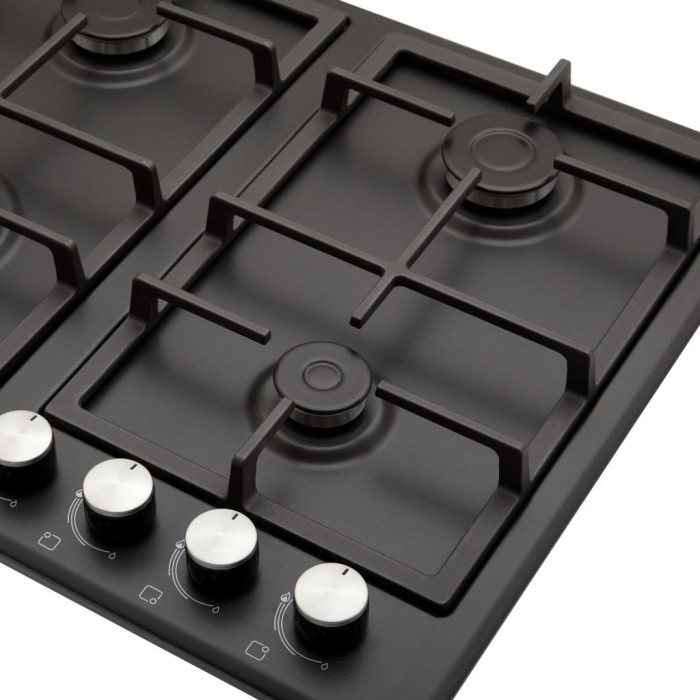 Газовая варочная поверхность. Классический дизайн. Материал поверхности - метал. 4 конфорки. Быстрая конфорка мощностью 3,0 кВт. 2 решетки (чугун). Поворотные переключатели с блокировкой. Электроподжиг - автоматический в ручке. Газконтроль. Длина шнура: 1,0 м. Современная эргономичная конструкция. Комплектуется форсунками как для подключения к газовой магистрали, так и к газовому баллону (дополнительный комплект форсунок). 5 лет официальной гарантии от производителя.