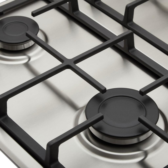 Газовая варочная поверхность. Классический дизайн. Материал поверхности - метал. 4 конфорки. Быстрая конфорка мощностью 3,0 кВт. 2 решетки (чугун). Поворотные переключатели с блокировкой. Электроподжиг - автоматический в ручке. Газконтроль. Длина шнура: 1,0 м. Современная эргономичная конструкция. Комплектуется форсунками как для подключения к газовой магистрали, так и к газовому баллону (дополнительный комплект форсунок). 5 лет официальной гарантии от производителя.