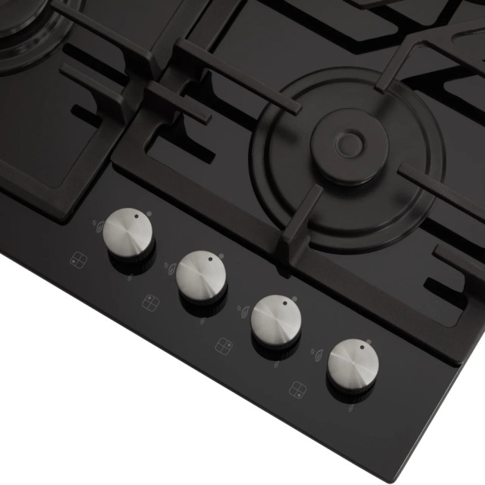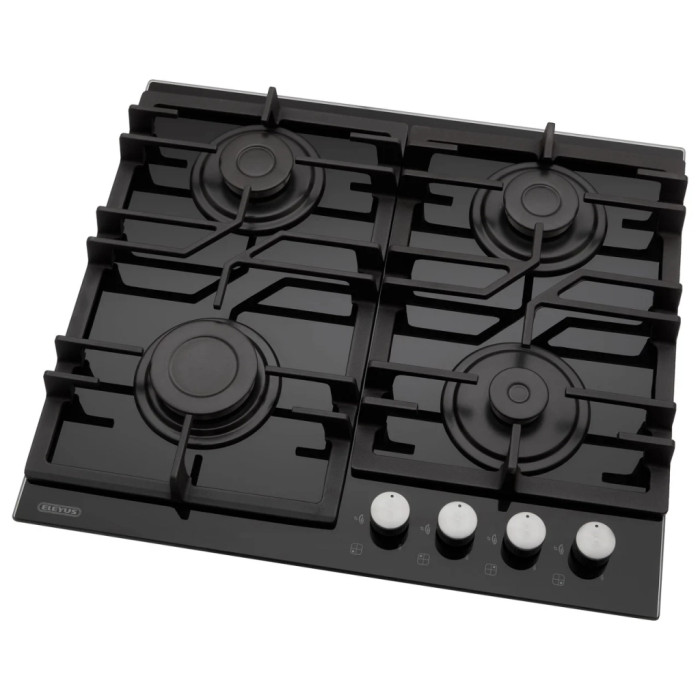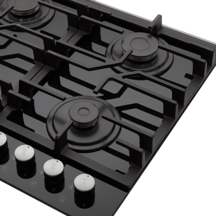 Газовая поверхность оборудована четырьмя конфорками: быстрой (2.9 кВт), двумя полубыстрыми (1.7 кВт каждая) и вспомогательной (0.9 кВт). Различные размеры и мощность позволяют выбрать подходящую конфорку для быстрого нагрева воды, поджаривания блюда или тушения на медленном огне.