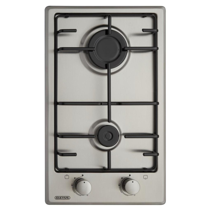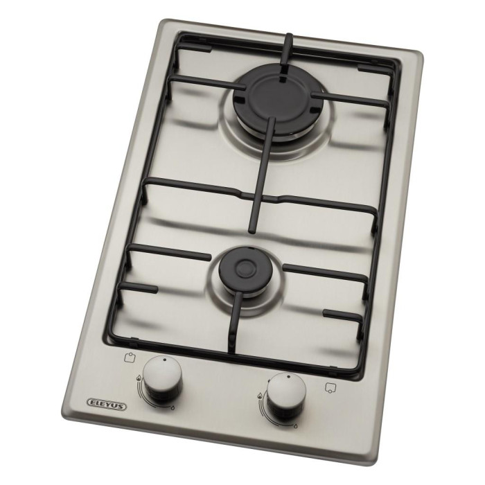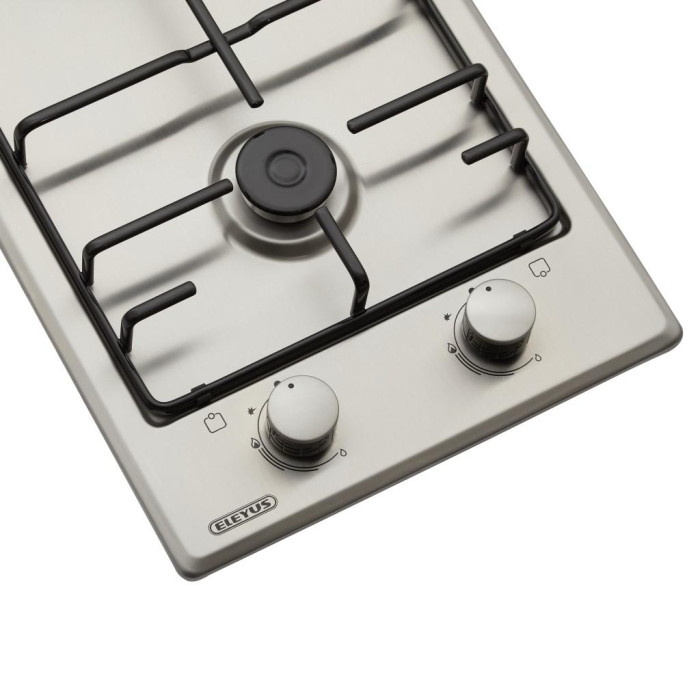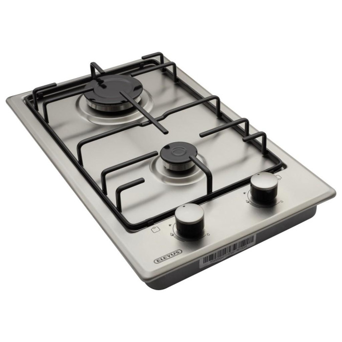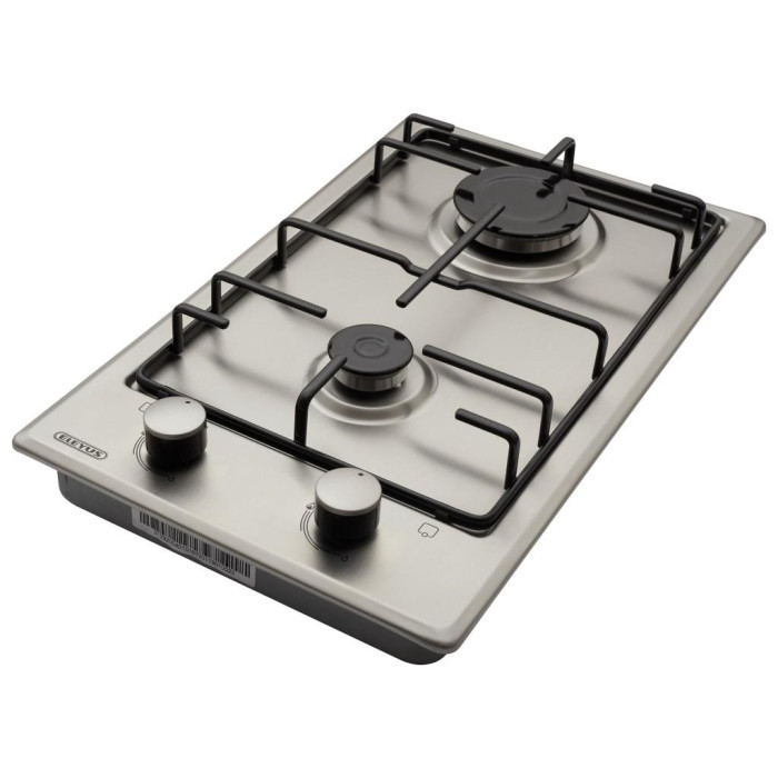 Газова варильна поверхня. Тип – «доміно». Матеріал поверхні – метал. 2 конфорки. Газ-контроль. Швидка конфорка потужністю 3 кВт. 1 решітка (сталь емальована). Поворотні перемикачі з блокуванням. Електрозапалювання – автоматичне в ручці. Довжина шнура: 1,1 м. Сучасна ергономічна конструкція. Комплектується жиклерами як для підключення до газової магістралі, так і до газового балона (додатковий комплект жиклерів).