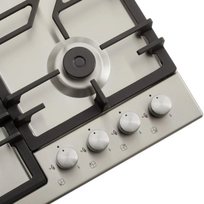 Для газовой варочной поверхности использовали пищевую нержавеющую сталь AISI 304, которая обеспечивает высокую прочность, стойкость к высоким температурам и стильный вид в интерьере.