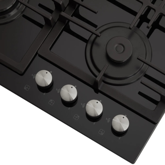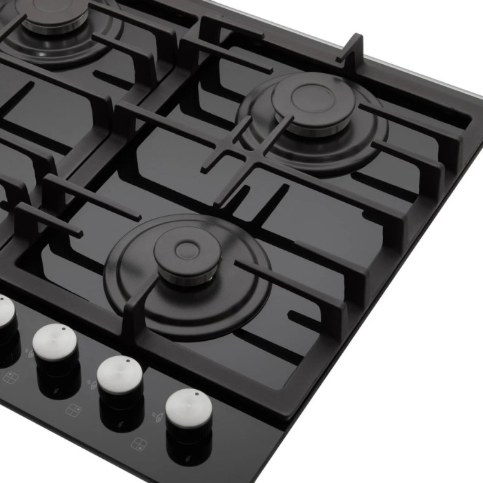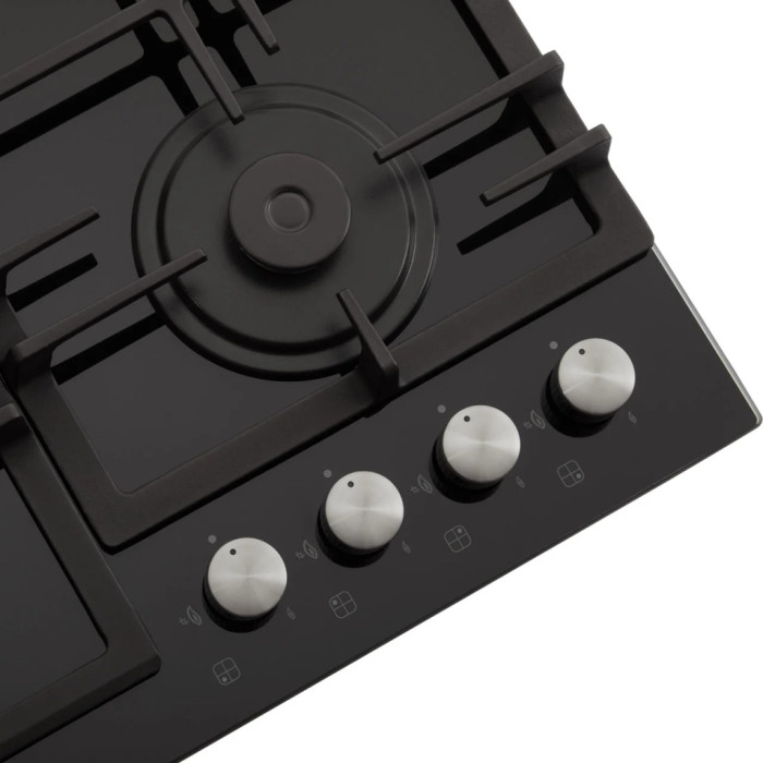 Газовая поверхность оснащена четырьмя горелками: быстрой (2.9 кВт), двумя полубыстрыми (по 1.7 кВт каждая) и вспомогательной (0.9 кВт). Различные размеры и мощность позволяют правильно подобрать горелку для быстрого нагрева воды, поджаривания блюда или тушения на слабом огне.
