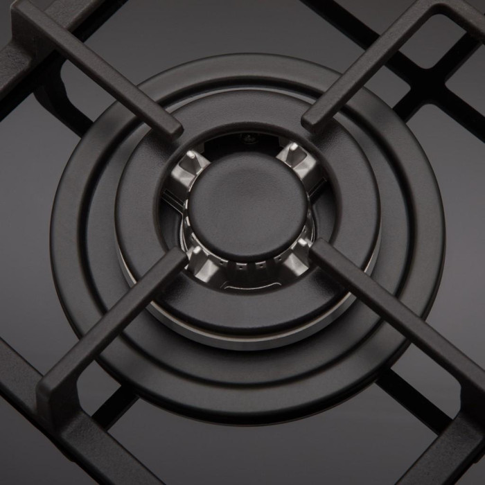 Варочная панель Eleyus VITA 60 BL CWF имеет четыре конфорки для более комфортного приготовления еды. Они удобно расположились в форме квадрата по всей площади устройства. Самая большая конфорка WOK мощностью в 2,5 кВт имеет существенное отличие от остальных. Использование тройного ряда пламени способствует более быстрому приготовлению пищи. Две стандартные конфорки имеют мощность по 1,75 каждая, и одна маленькая – 1 кВт.