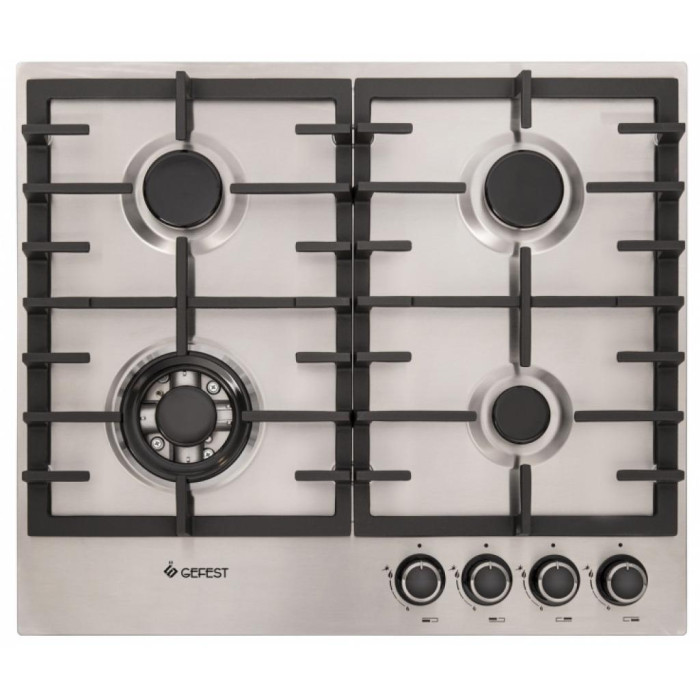 В конструкции модели предусмотрено четыре газовые конфорки различного диаметра и мощности, одна из которых является двузонной. Интенсивная турбоконфорка работает с двумя рядами пламени, что заметно усиливает мощность нагрева, и любое блюдо готовится быстрее обычного. Кроме того, подобная горелка лучше всего подходит для сковород типа «вок». Контролировать интенсивность и скорость приготовления продуктов можно с большой точностью при помощи удобных поворотных переключателей с фиксированным положением «малое пламя».