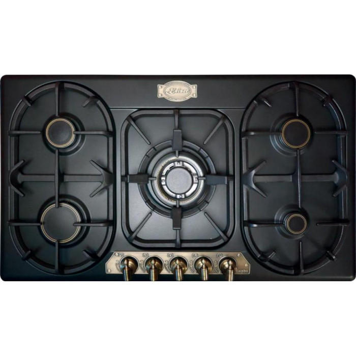Современный дизайн. Рабочая поверхность данной модели эмалированная. Эта варочная поверхность имеет современный дизайн, который выглядит очень стильно и привлекательно. В отличие от большинства классических моделей, данный прибор получил 5 конфорок. Каждый поворотный регулятор снабжен электроподжигом – приобретать дополнительные средства розжига не потребуется. Безопасность обеспечивается газ-контролем – в случае, если пламя погаснет, подача газа будет прекращена.