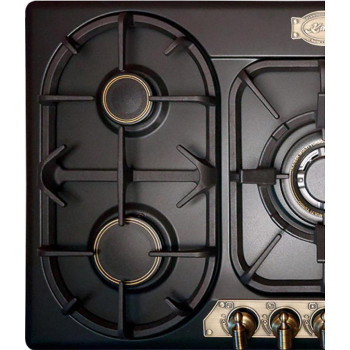 Двойной ряд пламени. Варочная поверхность Kaiser KG9325EmTurbo оснащена конфоркой с двойным рядом пламени, что позволяет в разы быстрее готовить блюда, а дно посуды греется более равномерно. В качества материала для решеток используется чугун, который обеспечивает их прочность, способен выдерживать большой вес и позволяет передвигать посуду с конфорки на конфорку без поднятия.