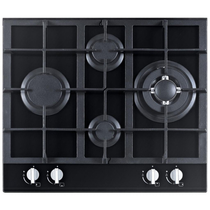 Варочная поверхность оснащена 4-мя газовыми конфорками, которые располагаются в удобном ромбовидном порядке. На передней панели имеются механические поворотные ручки - две с левой стороны и две справой. Рабочая поверхность этой модели изготавливается из закаленного стекла.