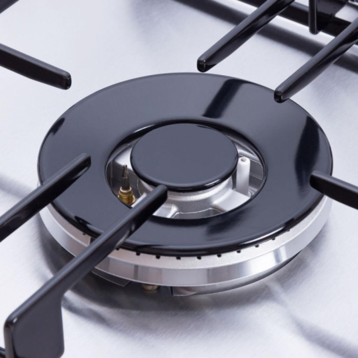 Прибор оснащен функцией электроподжига в ручках управления, WOK горелкой и системой безопасности "газ-контроль" - для вашего удобства в приготовлении блюда. Эргономичное расположение горелок обеспечивает дополнительный комфорт при использовании нескольких зон одновременно.