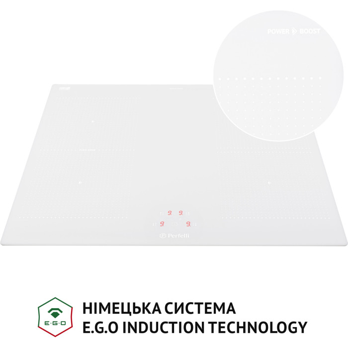 Варочная поверхность Perfelli HI 674 изготовлена во Франции! Ее главное преимущество – это высокое качество и полное соответствие всем европейским стандартам. Эта поверхность универсальна для воплощения любых кулинарных идей благодаря стандартной ширине – 59 см, четырем индукционным зонам нагрева диаметром 180 мм и мощностью 1400 Вт и интеллектуальной функции FLEXI ZONE, которая позволяет превратить всю левую часть поверхности в одну сплошную зону нагрева.