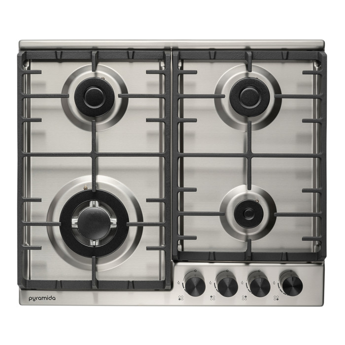 Новая варочная поверхность PFX 604 с 4 конфорками разной мощности сочетает стиль и функциональность. Модель выполнена из крепкой нержавеющей стали AISI 304, оснащена эмалированными решетками и имеет приятные на ощупь круглые ручки управления. Удобство и безопасность гарантируют электроподжиг, газ-контроль и итальянские газовые краны Sabaf.