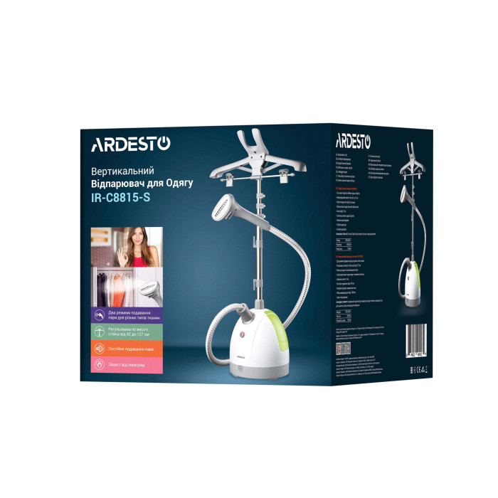 Вертикальный отпариватель ARDESTO мощностью 1 785 Вт поможет погладить и освежить вещи. Для различных задач в комплекте предусмотрено несколько насадок, в частности: для шерсти, отдельная щетка для плотной шерсти, а также для ухода за текстилем. Удобство при использовании обусловлено возможностью регулировать высоту стойки (42-127 см) и оптимальной длиной шланга (1,6 м)