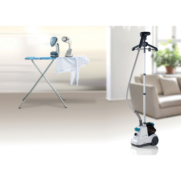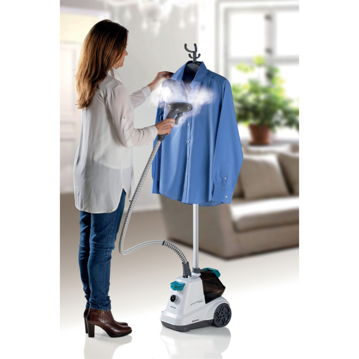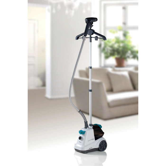 знімний резервуар для води , регулювання висоти стійки , регулятор подачі пари , обертання шнура на 360° , довжина парового шланга 1.2 м , час безперервної роботи: 90 хв