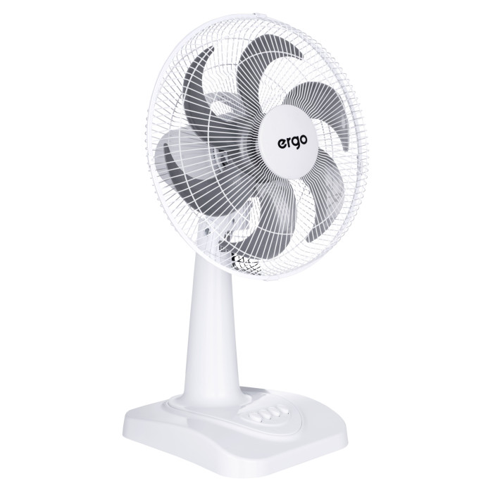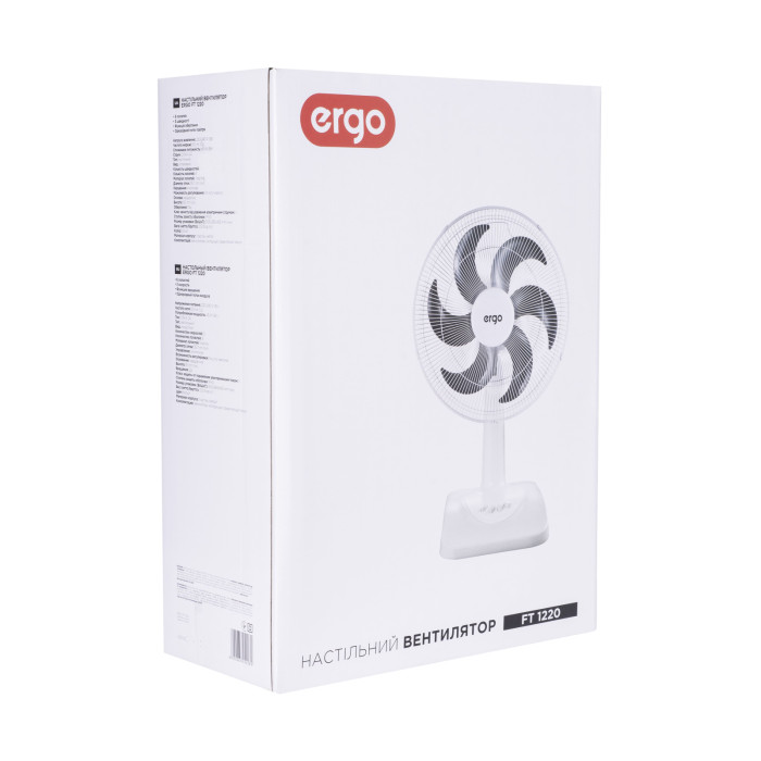 ERGO FT 1220 – это компактный настольный вентилятор, обладающий мощностью больших моделей. Благодаря шести лопастям диаметром 30 см и двигателю мощностью 45 Вт данный вентилятор создает поток воздуха скоростью до 5,2 м/с, наполняя свежим воздухом пространство вокруг себя.