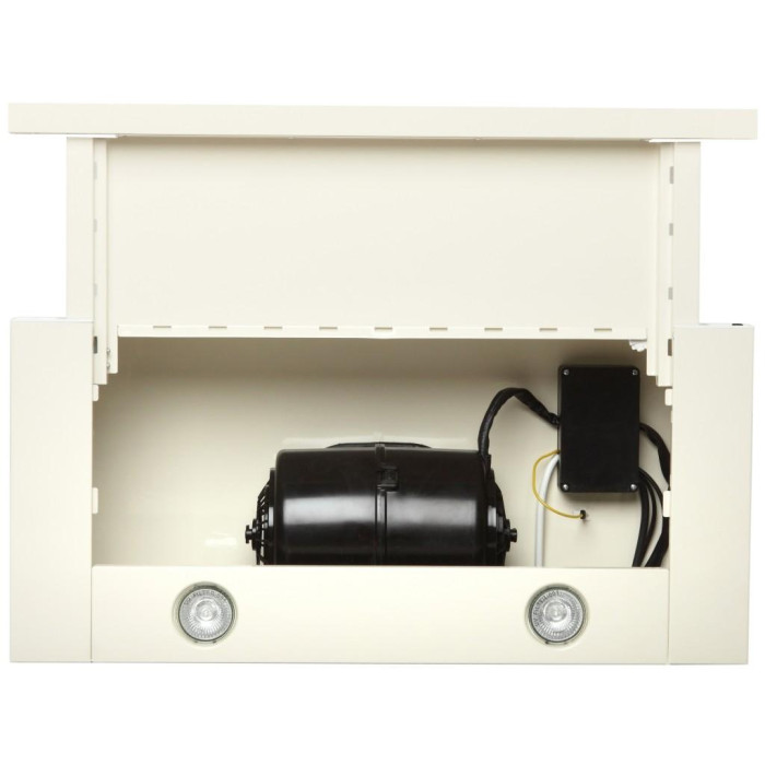 Вытяжка оборудована двумя галогенными лампами мощностью 35 Вт каждая. Механическое клавишное управления вытяжкой является простым, удобным и надежным. На корпусе расположены две клавиши - переключатель скоростей (2 скорости) и клавиша включения/выключения света.