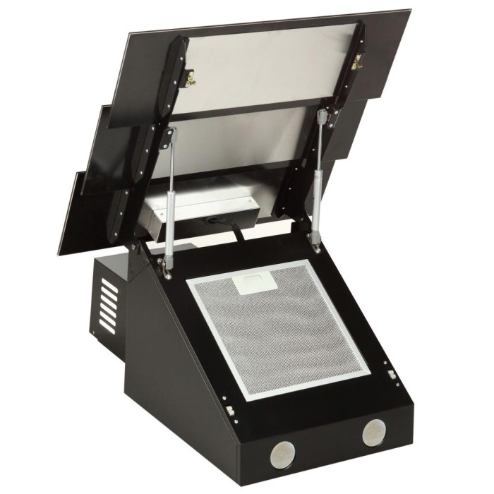 Вытяжка оборудована двумя светодиодными лампами, которые имеют длительный срок работы (более 25 000 часов) и потребляют мало энергии. Светоэлементы класса SMD производят естественный мягкий свет, что является наиболее благоприятным для организма и обеспечивают минимальную нагрузку на зрение. Кроме того, лампы относятся к распространенной контактной группе GU10, что позволяет при необходимости приобрести лампу в любом магазине осветительной техники и с легкостью ее заменить. Металлическая часть вытяжки покрыта высококачественной порошковой краской, которая защищает металл от коррозии. Закаленное стекло с зеркальным эффектом придает вытяжке совершенный вид, а амортизаторы передней панели обеспечивают беспрепятственный доступ к фильтру и облегчает уход за ним.