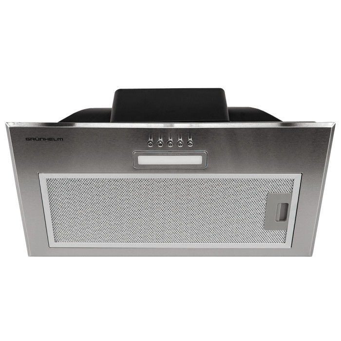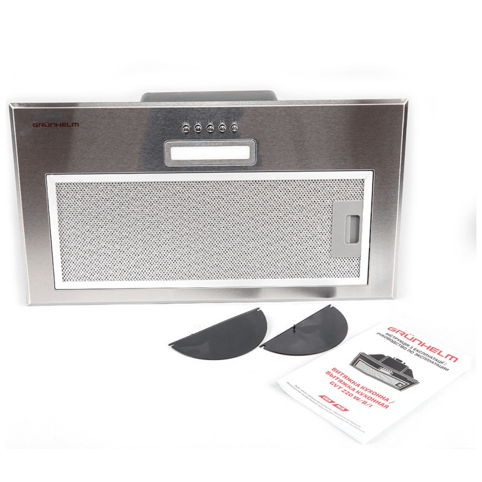 Вытяжка GRUNHELM GVC 620 I - это компактное встраиваемое устройство для отвода воздуха с простым кнопочным управлением. Корпус пластиковый, он не подвержен ржавчине, окислению, имеет небольшой вес, из-за чего шумность на минимуме – 54 дБ. Мощность двигателя 65 Вт с производительностью 650 м³/час. Подсветка представлена одной лампочкой 2 Вт, в общем потребляет вытяжка совсем немного.