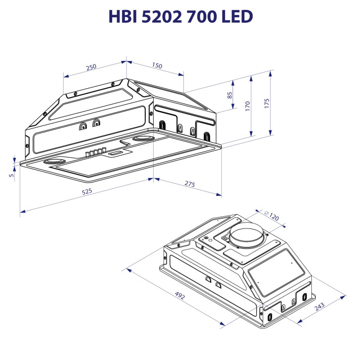 Благодаря превосходным эргономичным качествам, которыми наделена модель Minola HBI 5202 700 LED, она подойдет как маленькой, так и стандартной кухне. Часть конструкции устройства, которая должна быть скрыта от глаз, полностью прячется в шкафу, а рабочая часть остается на виду и органически дополняет общий дизайн. Открытая часть вытяжки изготовлена из крашеного металла серого цвета. Этот материал, кроме визуальной привлекательности, очень легок в уходе и обладает высокой устойчивостью к внешним воздействиям.
