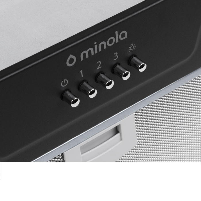 Кухонная вытяжка Minola HBI 5202 700 LED оборудована трехслойным жировым алюминиевым фильтром. Он обеспечивает надежную и эффективную защиту двигателя и остальных деталей вытяжки от попадания жира и грязи.
