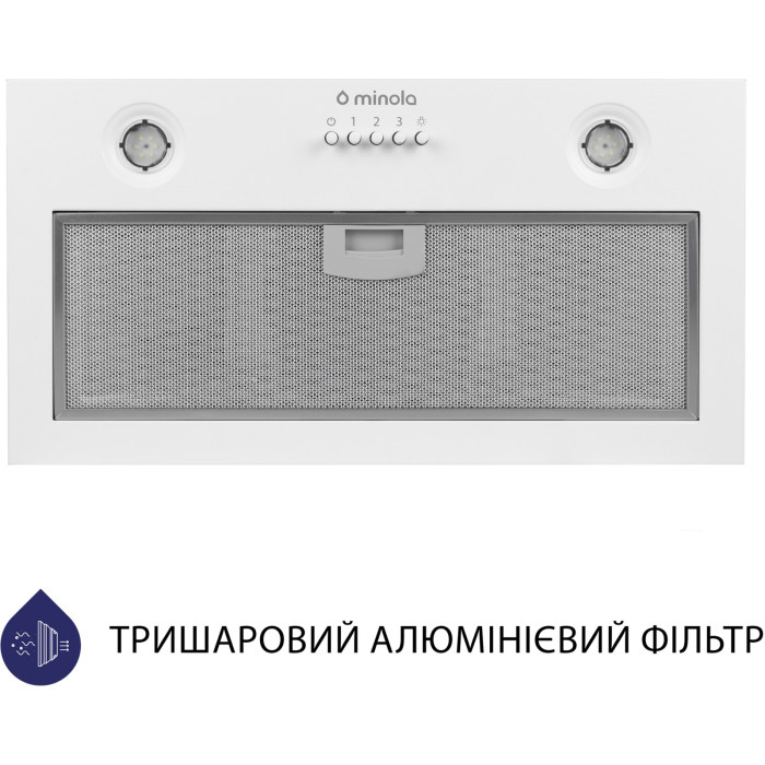 Кухонная вытяжка Minola HBI 5204 700 LED оборудована трехслойным жировым алюминиевым фильтром. Он обеспечивает надежную и эффективную защиту двигателя и остальных деталей вытяжки от попадания жира и грязи.