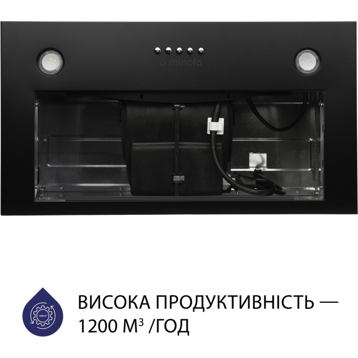 Полновстраиваемая кухонная вытяжка Minola HBI 5827 BL 1200 LED оборудована одним мотором высокой мощностью 200 Вт. Максимальная производительность устройства в режиме отвода воздуха составляет 1200 м3/час. Это позволяет эффективно удалять испарения, нежелательные запахи и копоть, которые образуются в процессе приготовления пищи.