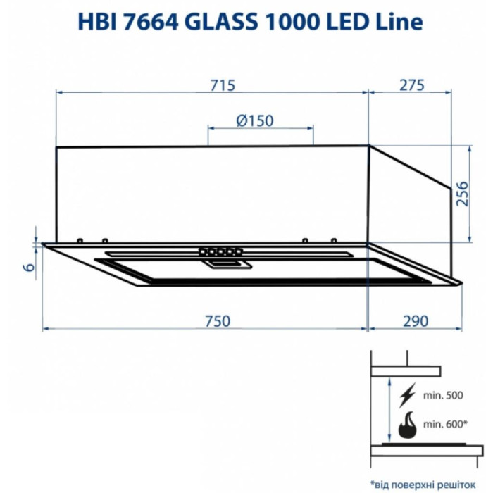Вытяжка кухонная Minola HBI 7664 BL GLASS 1000 LED Line