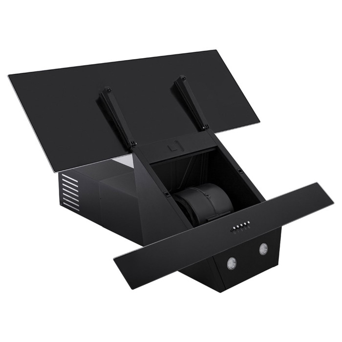Большинство современных интерьеров заменяют купольные вытяжки стильно-тонкими. Достойным представителем этой линейки является светодиодный капот Minola HDN 9412 BL 850. Его нестандартная ширина в 89,5 см подходит для размещения над широкой чулочно-носочной поверхностью и благодаря своей продуманной форме и размерам позволит быстро очистить воздух на кухне. Устройство оснащено 1 мотором и его производительность составляет 850 м3/ч. Такая вытяжка работает с низким уровнем шума до 59 дБ при создании комфортных условий для работы на кухне.