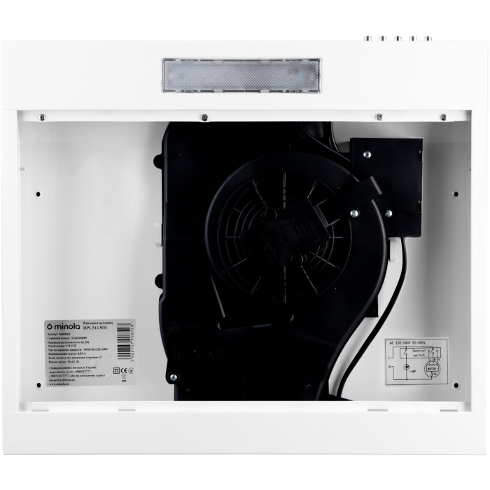 Плоская кухонная вытяжка Minola HPL 512 WH оборудована одним двигателем мощностью 80 Вт. Максимальная производительность устройства в режиме отвода воздуха составляет 450 м³/ч, что позволяет эффективно удалять испарения, нежелательные запахи и копоть, которые образуются в процессе приготовления пищи.