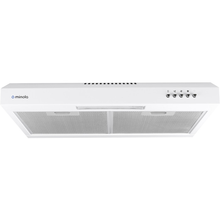 Кухонная вытяжка Minola HPL 512 WH оборудована двумя защитными алюминиевыми жировыми фильтрами. Они изготовлены из нескольких слоев алюминиевой сетки, что обеспечивает надежную защиту двигателя и других деталей от попадания жира и грязи. Очистку алюминиевых фильтров следует проводить каждые 2-3 месяца вручную в мыльном растворе или в посудомоечной машине.