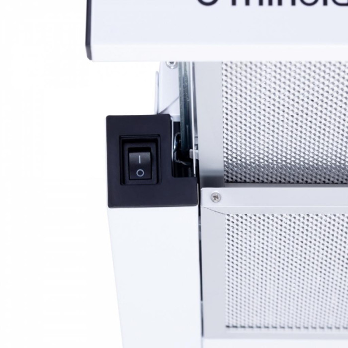 Minola HTL 6214 700 LED работает на потребляемой мощности мотора в 65 Вт. На такой мощности устройство имеет максимальную производительность 700 м3/ч. Данная модель вытяжки допускает работу на двух возможных скоростях. Прибор работает на среднем уровне шума, показатели шума варьируются в диапазоне 52-61 Дб. Управление вытяжкой производится посредством механической кнопочной панели на передней стенке устройства.