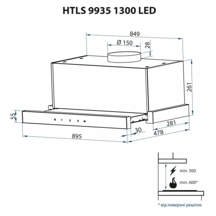 Купить Minola HTLS 9935 BL 1300 LED можно по достойной для такого товара цене, он находится в высоком ценовом сегменте, но его работа и эффективность стоят того. Ширина воздухозаборной панели составляет 89,5 см. Вытяжка имеет функцию периметрального всасывания, освещается светодиодными лампочками по 2 Вт каждая и управляется с помощью сенсорного дисплея на передней панели. Вытяжка оснащена таймером и режимом автоотключения.